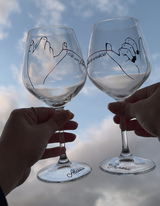 Filo rosso 2.0 | Set di calici da vino personalizzati con nome | 2pz. | Idea regalo